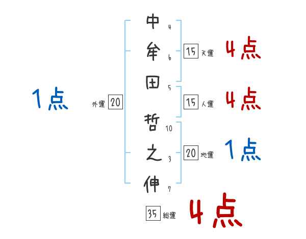 中牟田哲之伸さんの画数の鑑定結果