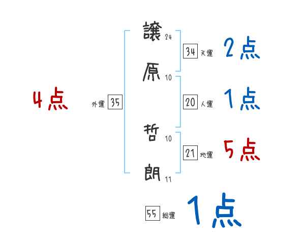 譲原哲朗さんの画数の鑑定結果