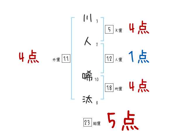 川人唏汰さんの画数の鑑定結果