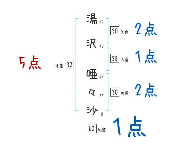 湯沢唖々沙さんの画数の鑑定結果