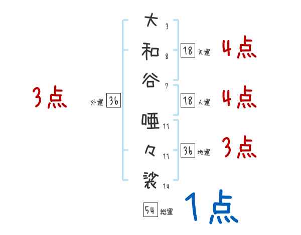 大和谷唖々裟さんの画数の鑑定結果