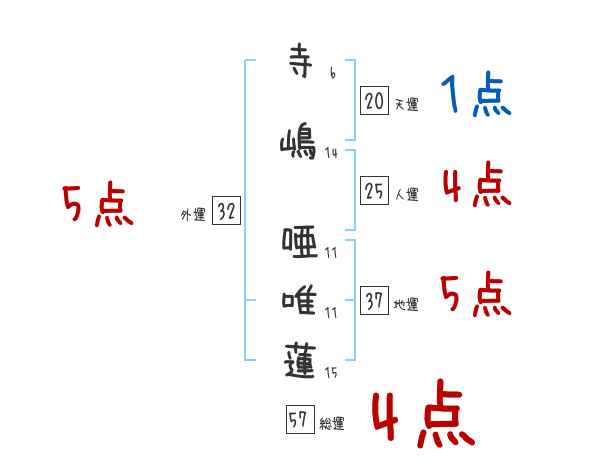 寺嶋唖唯蓮さんの画数の鑑定結果