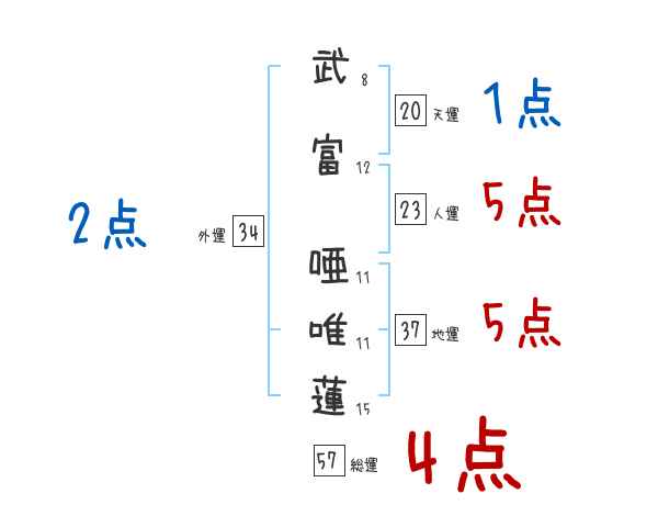 武富唖唯蓮さんの画数の鑑定結果