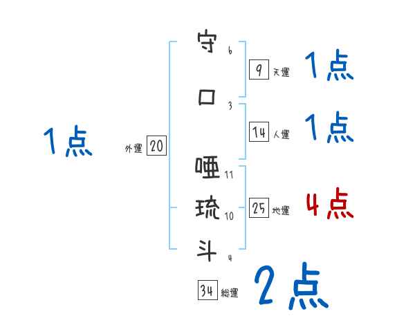 天運![]() | 守口唖琉斗さんの天運は9画の1つ星!消極的で才能を発揮することが苦手なことも。周りの意見に耳を傾けましょう。 家系が持つ宿命的な運勢を表します。祖先から受け継いだ苗字ですので自分の力が及びません。家柄を象徴します。 |