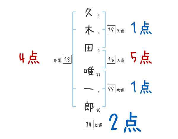 久木田唯一郎さんの画数の鑑定結果