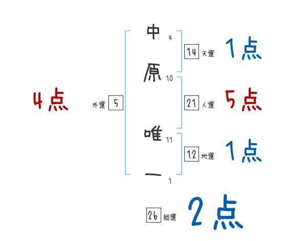 中原唯一さんの画数の鑑定結果
