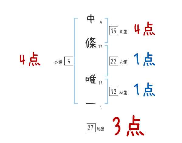 人運![]() | 中條唯一さんの人運は22画の1つ星!努力することが苦手ないっぽう手先が器用。芸術性にも優れる。 性格や才能などを表す2番目に重要な運勢です。人間関係や協調性、社会的な成功に影響します。主に20歳から50歳ぐらいまでの中年期の運勢を表します。 |