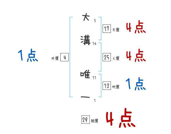 総運![]() | 大溝唯一さんの総運は29画の4つ星!完全主義で才能がある。厳格な心の持ち主。 あなたの人生を表す1番重要な運勢です。生涯を通じて影響する総合運となり、主に50歳以降の晩年期に影響を及ぼします。 |