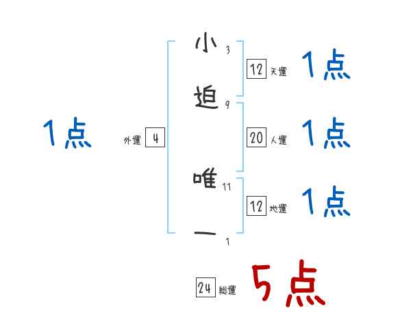 小迫唯一さんの画数の鑑定結果