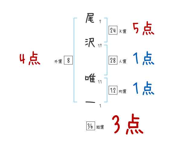 尾沢唯一さんの画数の鑑定結果