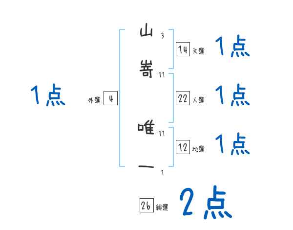山嵜唯一さんの画数の鑑定結果