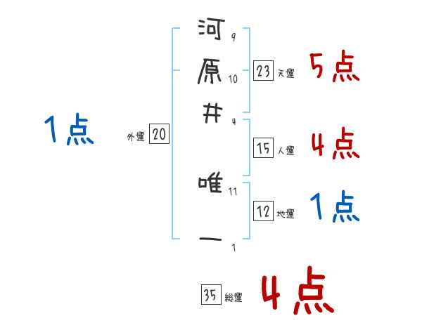 河原井唯一さんの画数の鑑定結果