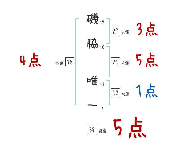 磯脇唯一さんの画数の鑑定結果