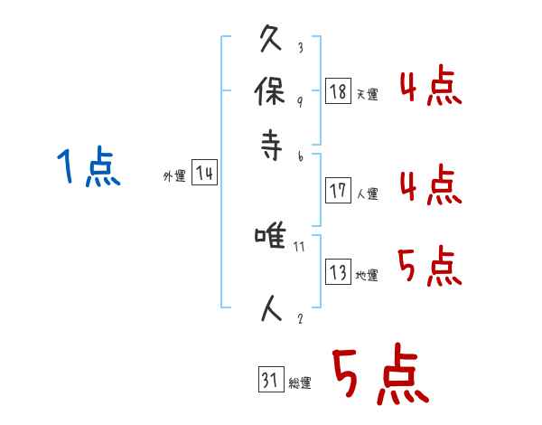外運![]() | 久保寺唯人さんの外運は14画の1つ星!人に対して優しいがストレスを溜め込みがち。人間関係のトラブルを避けるよう気をつけましょう。 生活面を象徴する運勢です。外部から受ける影響力を表し、結婚運、家庭運や職場、環境への順応性を表します。 |