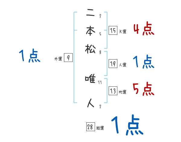 二本松唯人さんの画数の鑑定結果