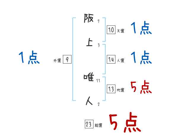 総運![]() | 阪上唯人さんの総運は23画の5つ星!想像力に優れ活力がある。一代で成功し名誉を手に入れる。 あなたの人生を表す1番重要な運勢です。生涯を通じて影響する総合運となり、主に50歳以降の晩年期に影響を及ぼします。 |