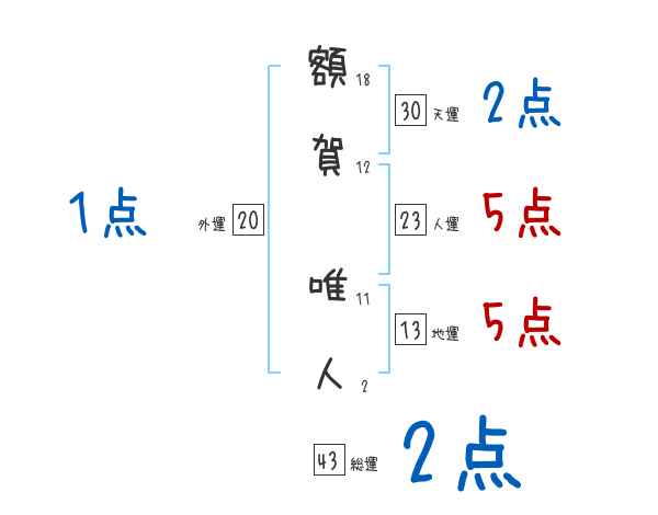 額賀唯人さんの画数の鑑定結果