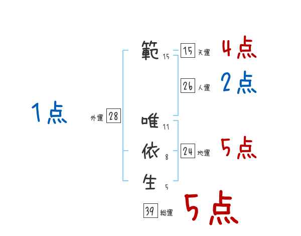 範唯依生さんの画数の鑑定結果