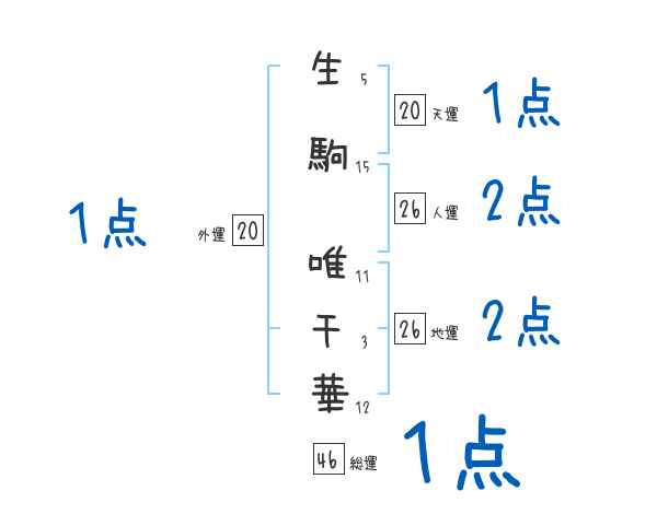 生駒唯千華さんの画数の鑑定結果
