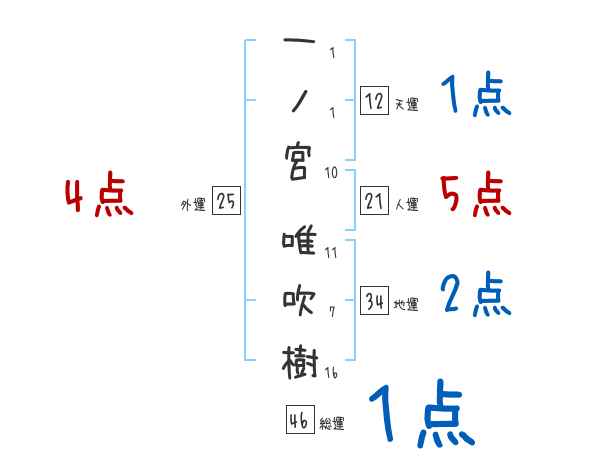 一ノ宮唯吹樹さんの外運は25画の4つ星