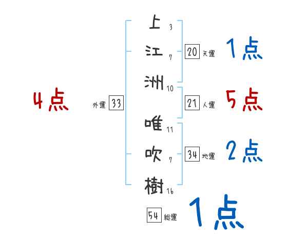 上江洲唯吹樹さんの画数の鑑定結果