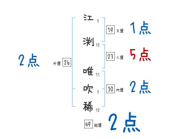 外運![]() | 江渕唯吹稀さんの外運は26画の2つ星!波瀾万丈かも。信頼できる人を大事にしましょう。 生活面を象徴する運勢です。外部から受ける影響力を表し、結婚運、家庭運や職場、環境への順応性を表します。 |