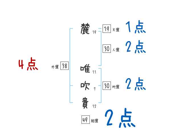 麓唯吹貴さんの画数の鑑定結果