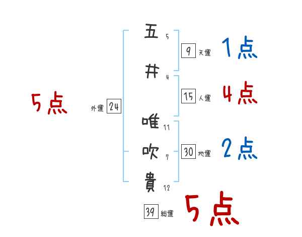 五井唯吹貴さんの画数の鑑定結果