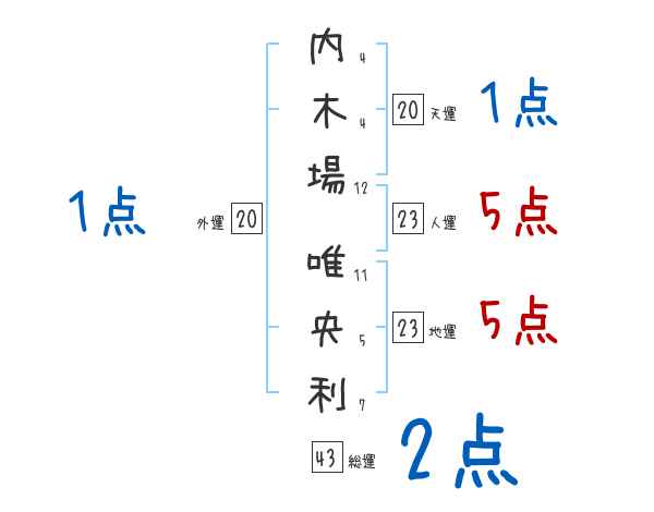 内木場唯央利さんの画数の鑑定結果