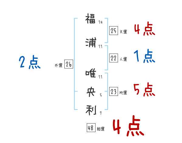 福浦唯央利さんの画数の鑑定結果