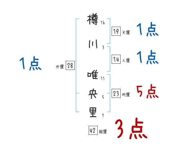 総運![]() | 樽川唯央里さんの総運は42画の3つ星!病気に注意。多芸であるが消極的でおとなしい。 あなたの人生を表す1番重要な運勢です。生涯を通じて影響する総合運となり、主に50歳以降の晩年期に影響を及ぼします。 |