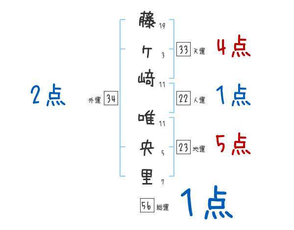 藤ヶ﨑唯央里さんの画数の鑑定結果
