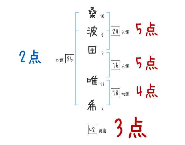 天運![]() | 桑波田唯希さんの天運は24画の5つ星!家庭運が良く順調な人生。金運にも恵まれる。 家系が持つ宿命的な運勢を表します。祖先から受け継いだ苗字ですので自分の力が及びません。家柄を象徴します。 |