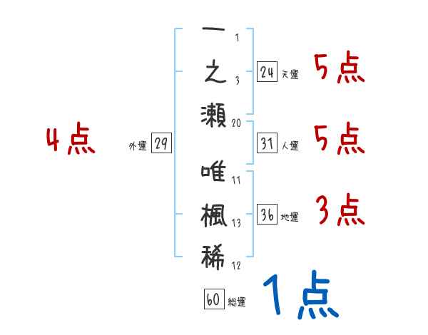 一之瀬唯楓稀さんの画数の鑑定結果