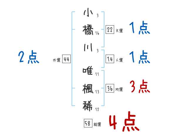 小橋川唯楓稀さんの画数の鑑定結果