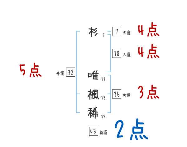 杉唯楓稀さんの画数の鑑定結果
