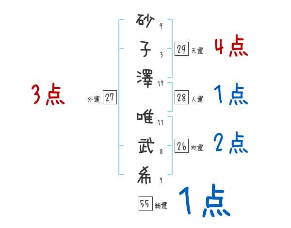 砂子澤唯武希さんの画数の鑑定結果