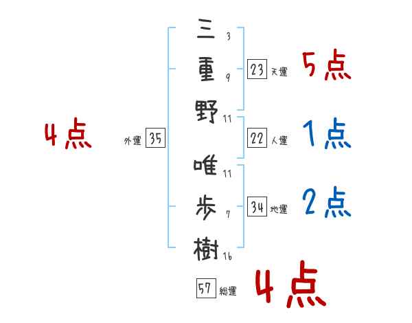 三重野唯歩樹さんの画数の鑑定結果