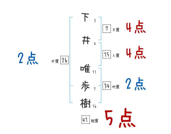 下井唯歩樹さんの画数の鑑定結果