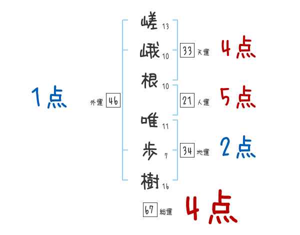 嵯峨根唯歩樹さんの画数の鑑定結果