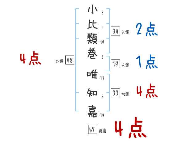 小比類巻唯知嘉さんの画数の鑑定結果