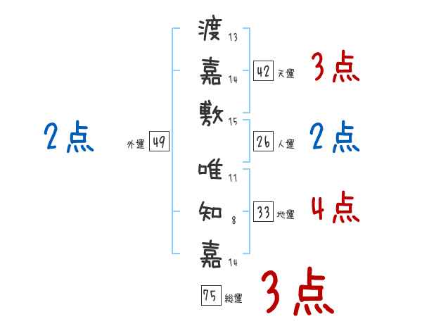 渡嘉敷唯知嘉さんの画数の鑑定結果