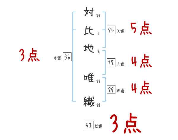 対比地唯織さんの画数の鑑定結果