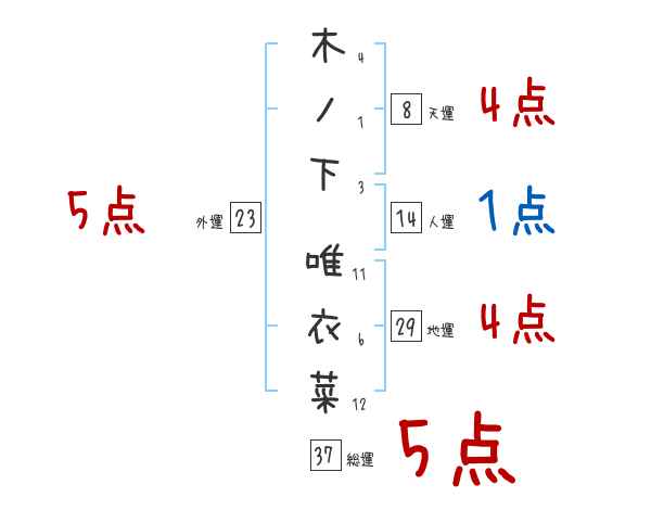 木ノ下唯衣菜さんの画数の鑑定結果
