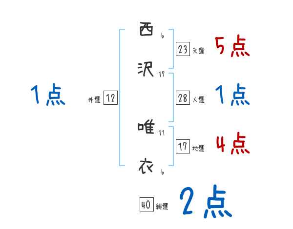 西沢唯衣さんの画数の鑑定結果