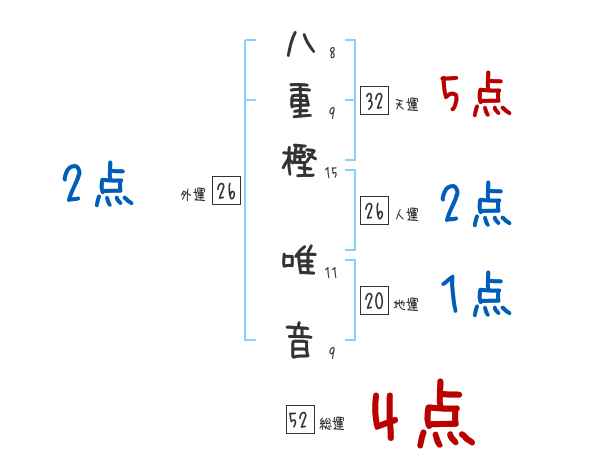 八重樫唯音さんの画数の鑑定結果