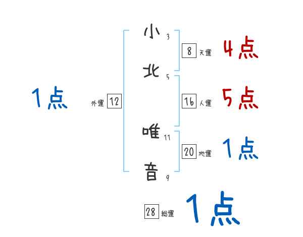 小北唯音さんの画数の鑑定結果