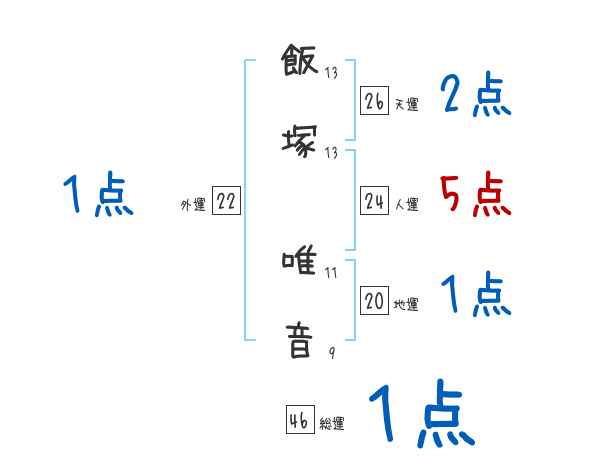 飯塚唯音さんの画数の鑑定結果