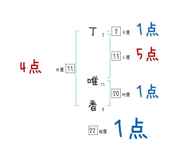 丁唯香さんの画数の鑑定結果