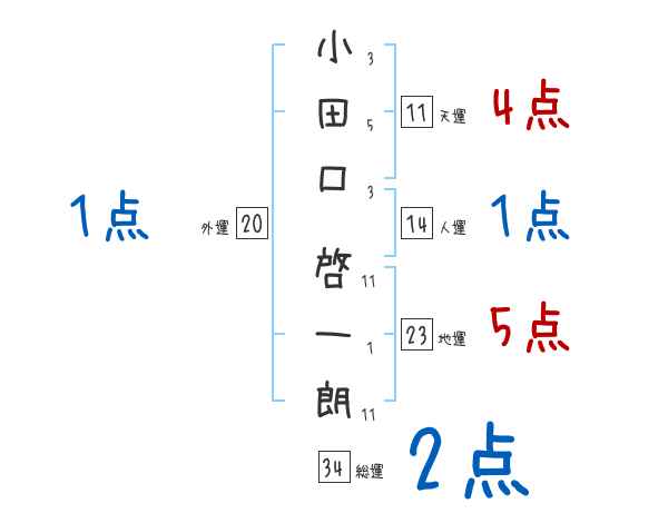 小田口啓一朗さんの画数の鑑定結果